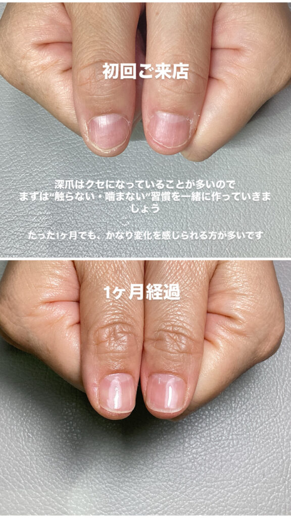 • 1ヶ月で深爪変化